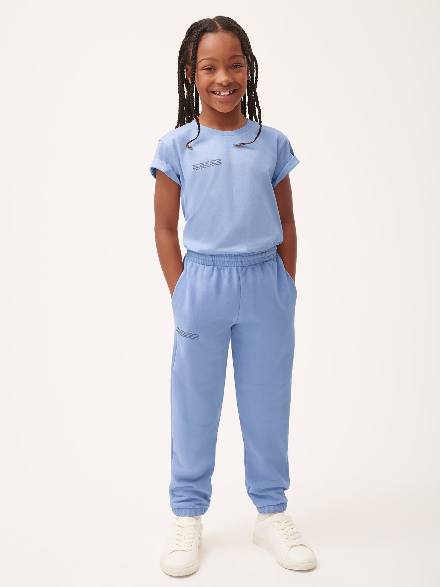 PANGAIA track pants for kids are designed for comfort and versatility. They are made from materials including cotton, wool, cashmere and linen.