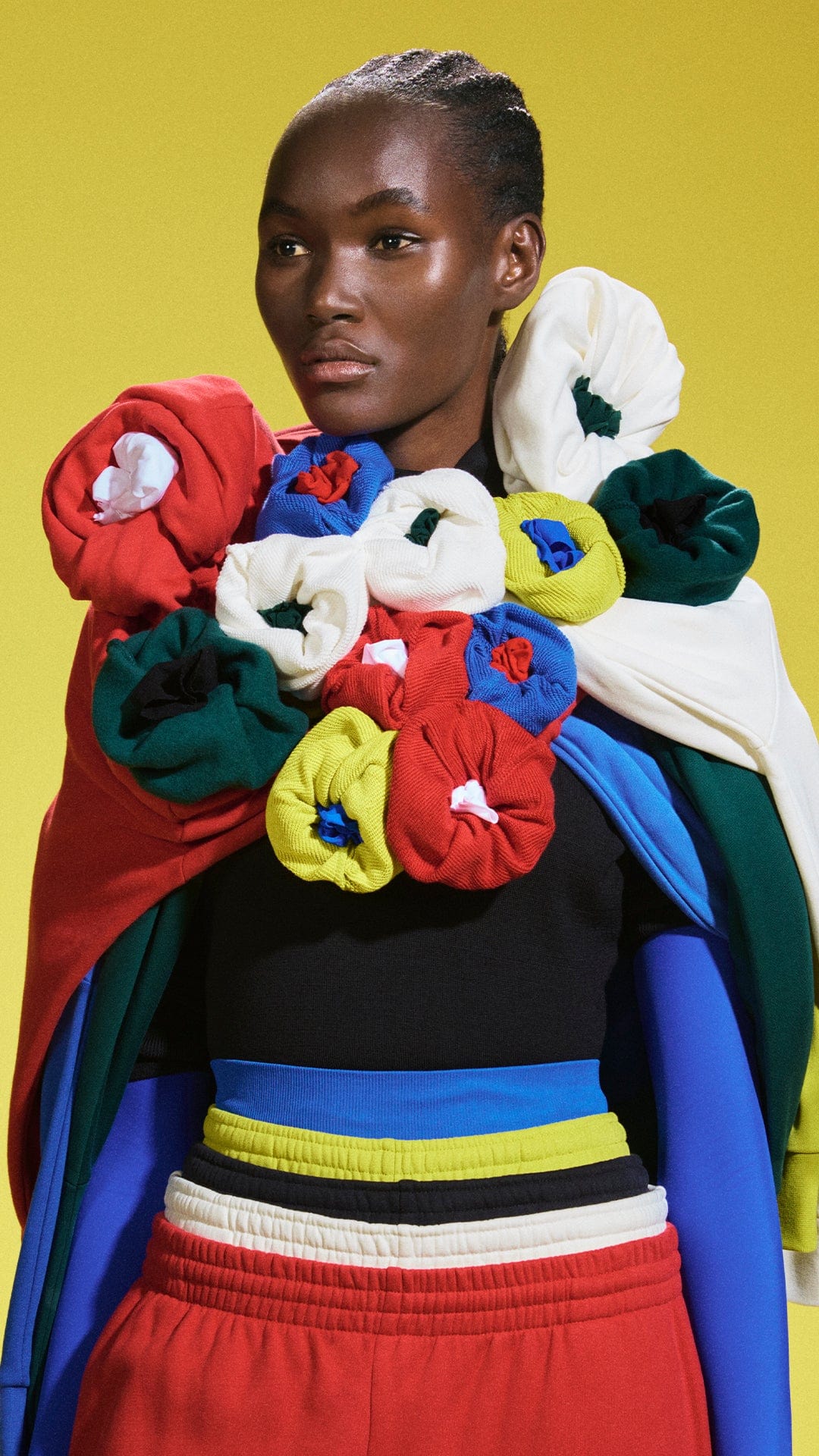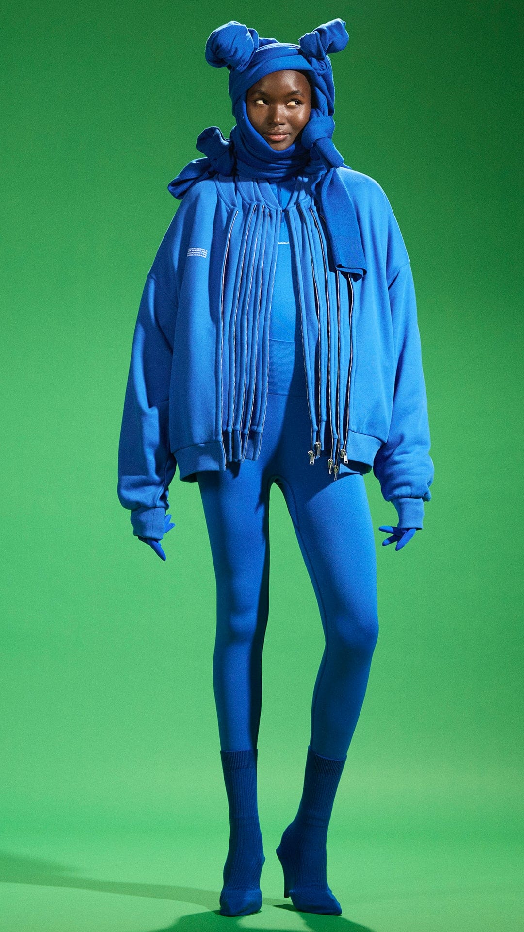 I was really inspired by the PANGAIA tracksuit and the vibrant colors they come in. I wanted to use them to try and create strong fashion imagery, by reshaping and creating a dynamic version of a tracksuit that you usually wouldn't see. We're so used to tracksuits being associated with sports but it now lives in everyone's wardrobe, so I wanted to take the idea of the tracksuit and bring it into a different dimension.