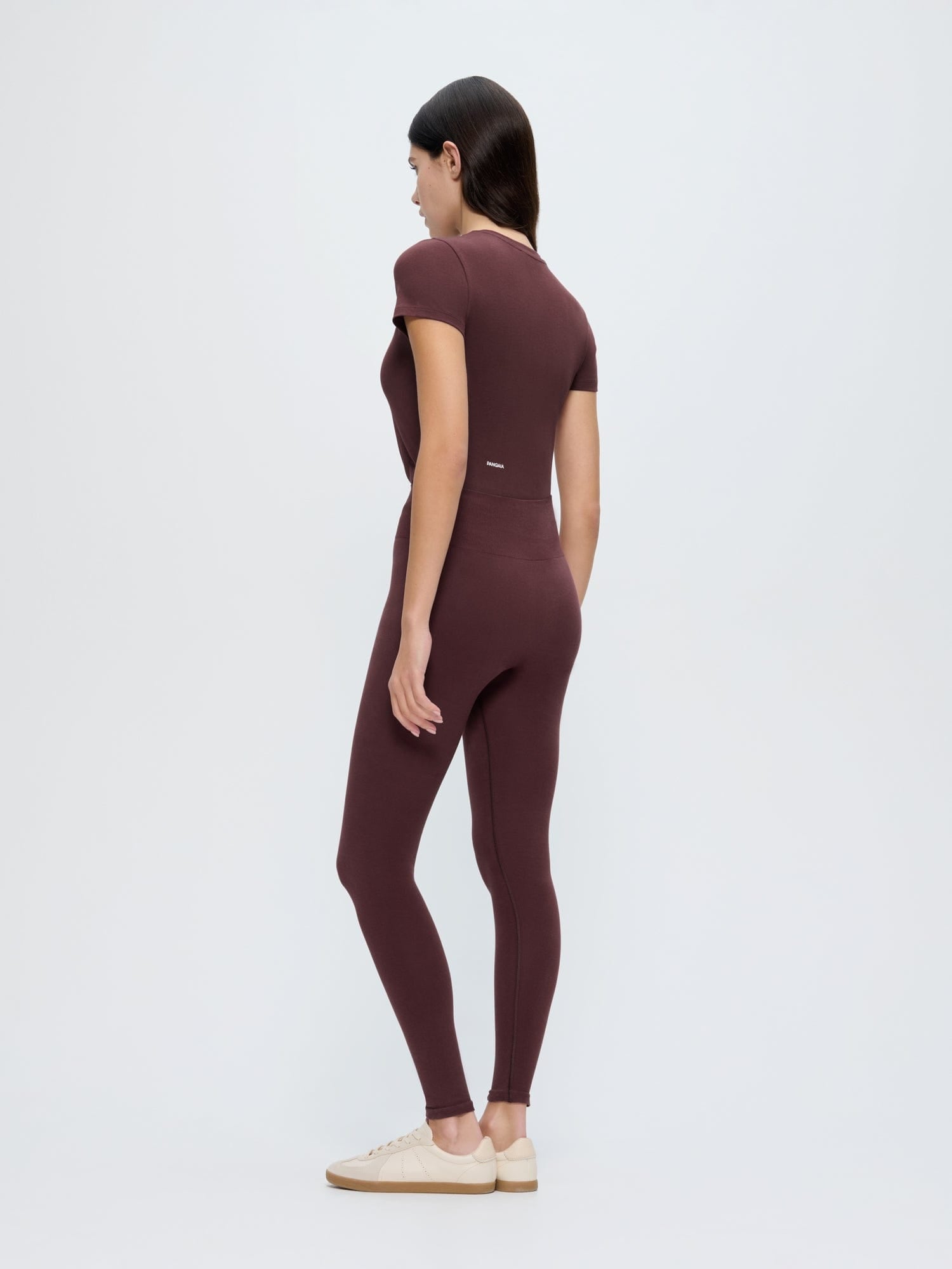 Effortless by nature. Expertly crafted from 67% cotton, 23% polyamide bio-based, and 10% Elastane Creora® the Cotton-Stretch Leggings in chestnut maroon offer an ultra-soft feel and an ultra-close fit. Designed for daily rituals, this just-landed athleisure wear staple was treated with PPRMINT™ oil to help keep it fresher for longer.