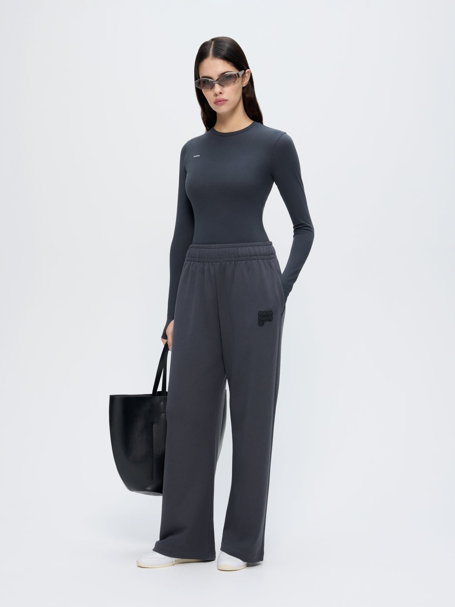 Effortless by nature. Expertly crafted from 94% OCS-certified organic cotton and 6% Elastane ROICA™, the Cotton-Stretch Long-Sleeved Top in smoked black offers an ultra-soft feel and an ultra-close fit. Designed for daily rituals, this just-landed athleisure wear staple was treated with PPRMINT™ oil to help keep it fresher for longer.