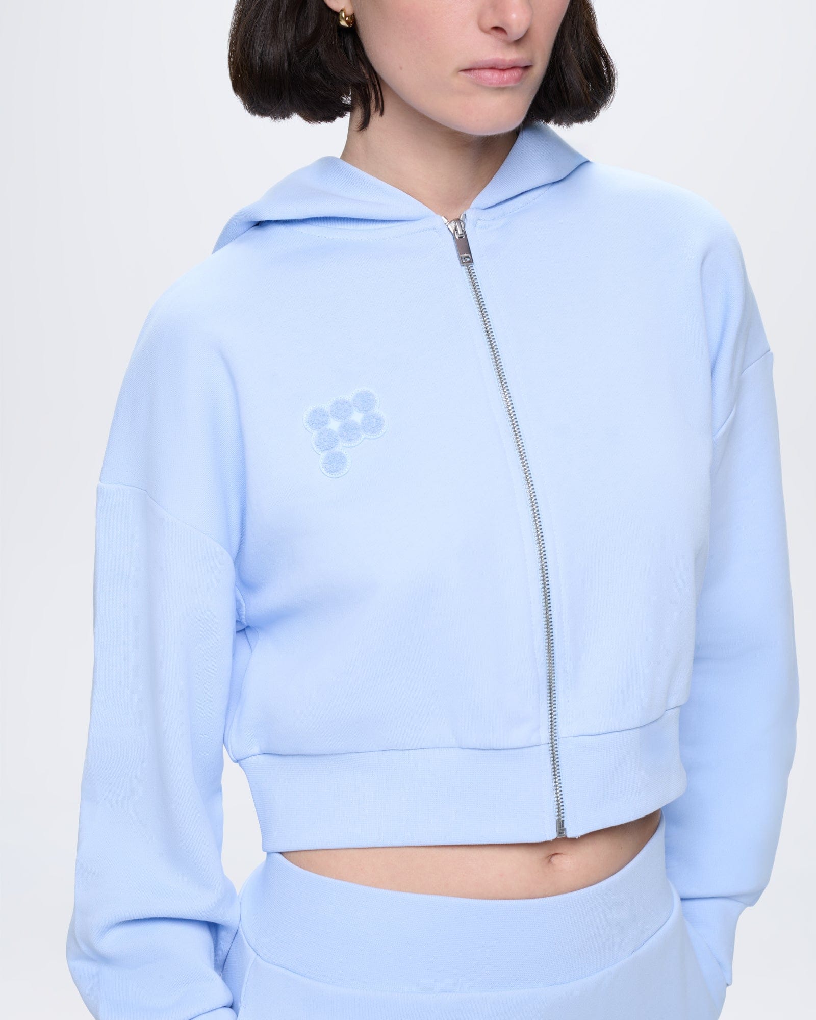 Womens Cropped Zip Up Hoodie—Wildflower Blue