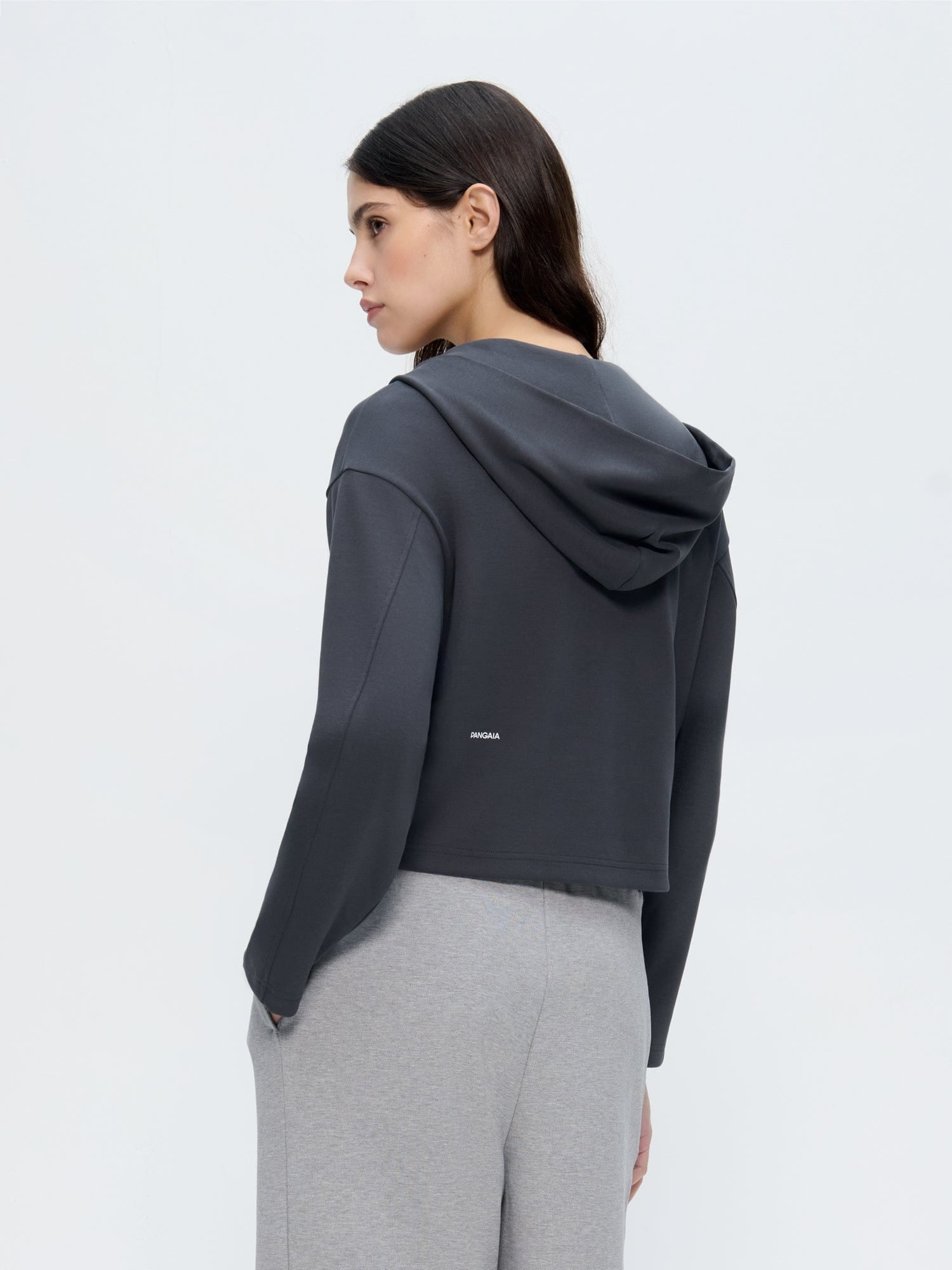 Details: A cropped silhouette, hooded, front zip closure, side pockets, PANGAIA textblock (on front) and PANGAIA word mark (on back)