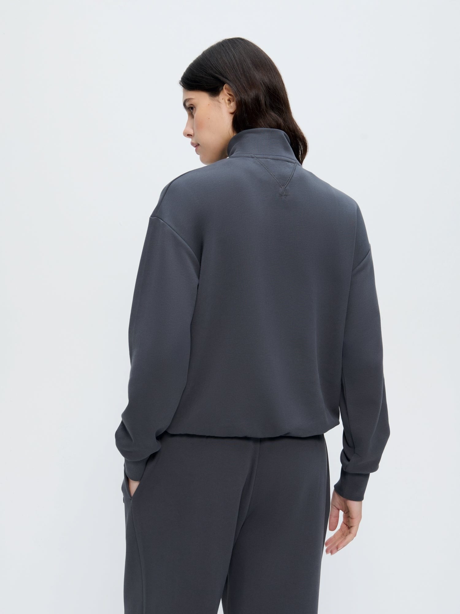 Ground yourself in nature-inspired neutrals. Expertly crafted from 100% OCS-certified organic cotton, the Half Zip Sweatshirt in smoked black offers a relaxed silhouette, an oversized fit and an ultra-soft feel. Designed to balance both warmth and breathability, this versatile essential was treated with PPRMINT™ oil to help keep it fresher for longer.