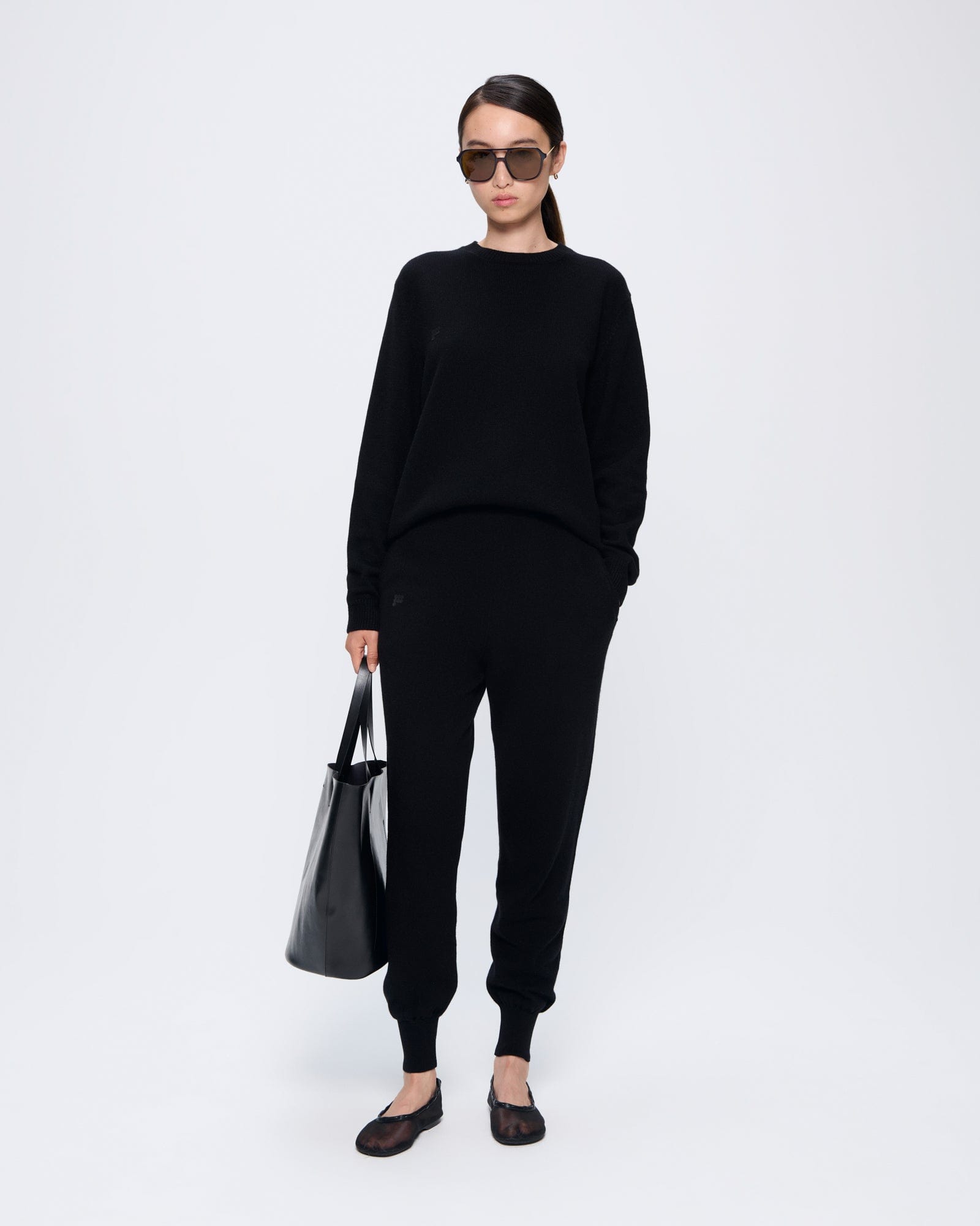 Womens Recycled Cashmere Crewneck Sweatshirt - Black