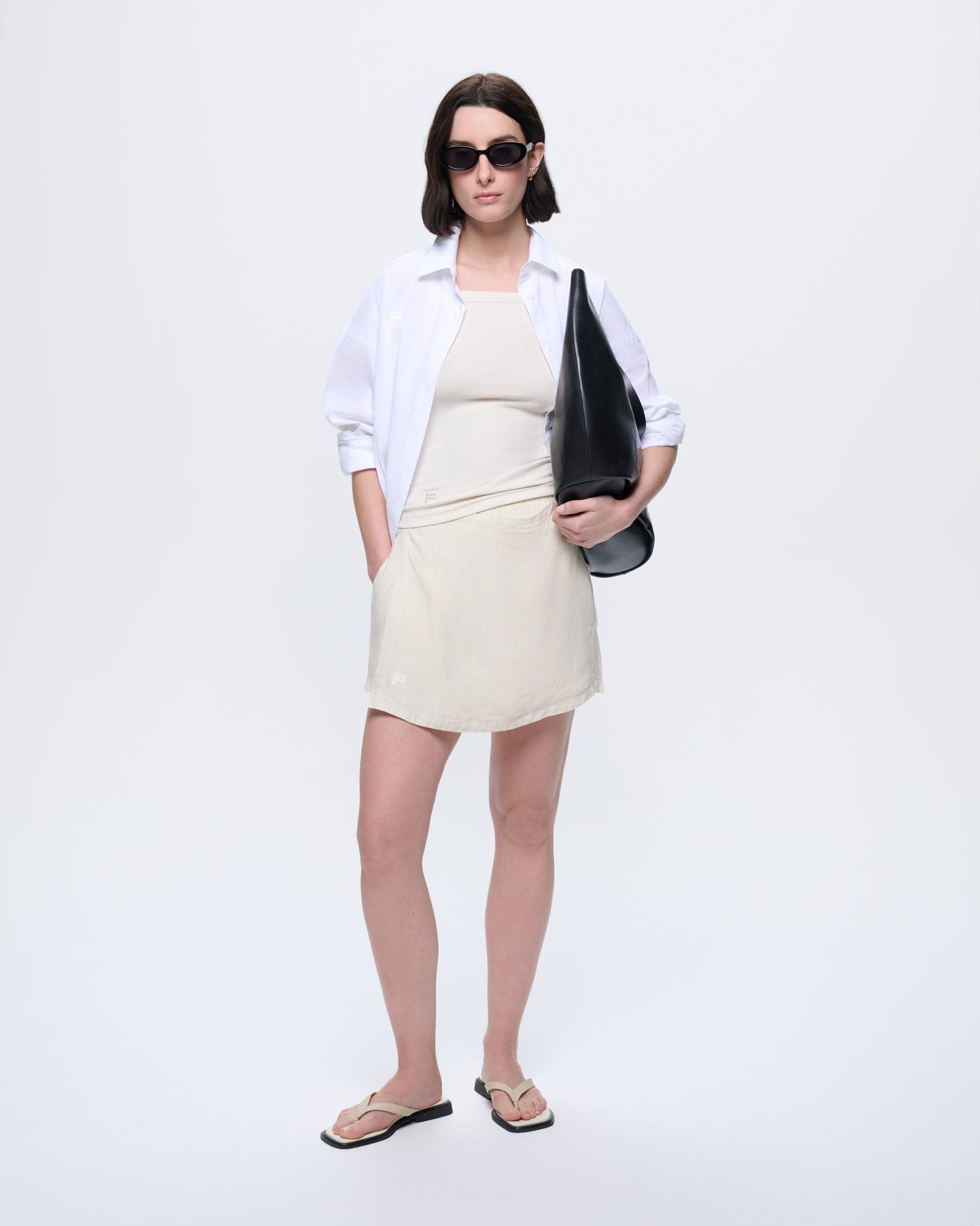 • Details: Square neck, thick strap detailing, tonal 7 circle P logo (on front)